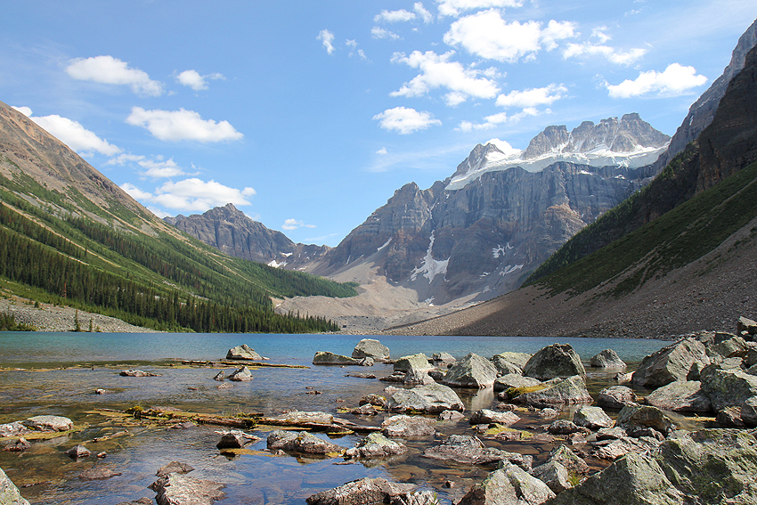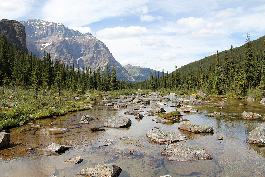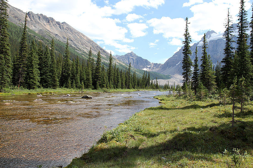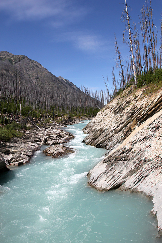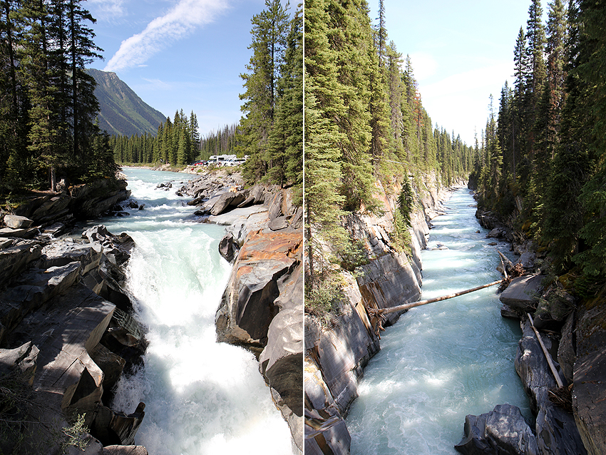 Nach der morgendlichen Stärkung geht es nun erstmals so richtig in die Rockies. Wir schauen uns die Sehenswürdigkeiten entlang des Highway 93 im Kootenay National Park an und machen anschließend in Banff und Canmore halt (beide Orte sind nicht so wirklich spannend, da sie ausschließlich aus Giftshops, Motels und Restaurants bestehen ;-)). Entlang der Strecke konnten wir die Überreste des Waldbrandes von 2003 erkennen, bei dem 17400 ha Wald den Flammen zum Opfer fielen. [Radium Hot Springs ,BC - Banff ,AB - Canmore ,AB - Radium Hot Springs ,BC] |