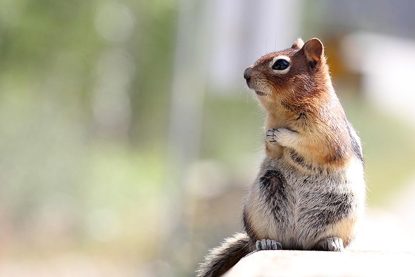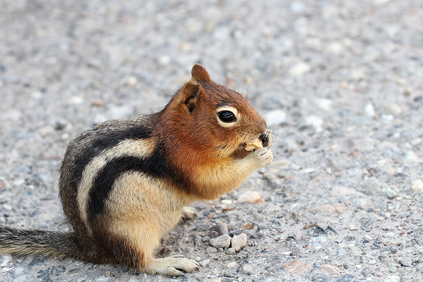 Auf unserer Reise die stetigen Begleiter: Streifenhörnchen. Unsere Tour führt uns zum Lake Louise und Lake Moraine und wir wandern hier zu den Consolation Lakes. Was für ein Panorama! Einem Bären sind wir auf dieser Tour, bei der man per Gesetz nur in Gruppen ab vier Personen gehen darf, jedoch nicht. Vielleicht zum Glück ;-). Es geht weiter zu unserer letzten Station für heute: Lake Emerald. [Radium Hot Springs, BC - Golden ,BC] |