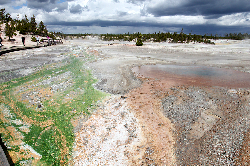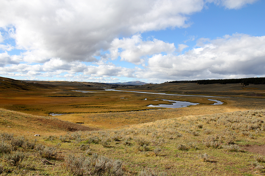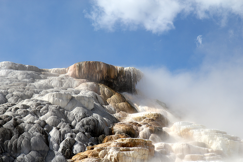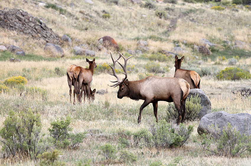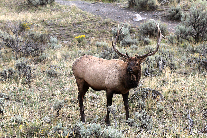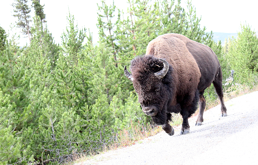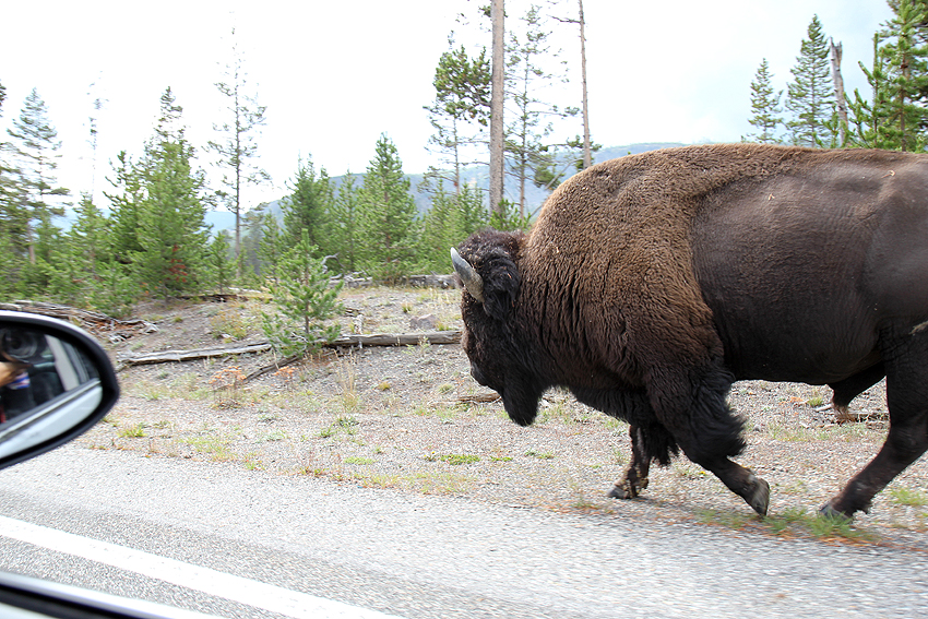An unserem ersten Tag im Yellowstone National Park entdecken wir wieder viele Hirsche auf unserem Weg zu den zahlreichen heißen (Schwefel-)Quellen und Geysiren. Das Highlight des Tages jedoch ist die Begegnung mit einem Bison, das weniger als einen Meter entfernt an unserem Auto gemütlich vorbeigeht. [Bozeman, MT - Yellowstone NP - Bozeman, MT] |