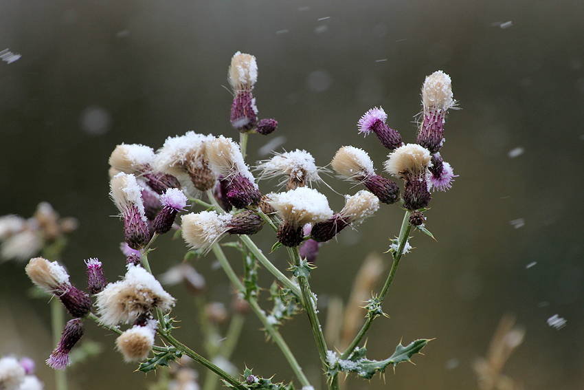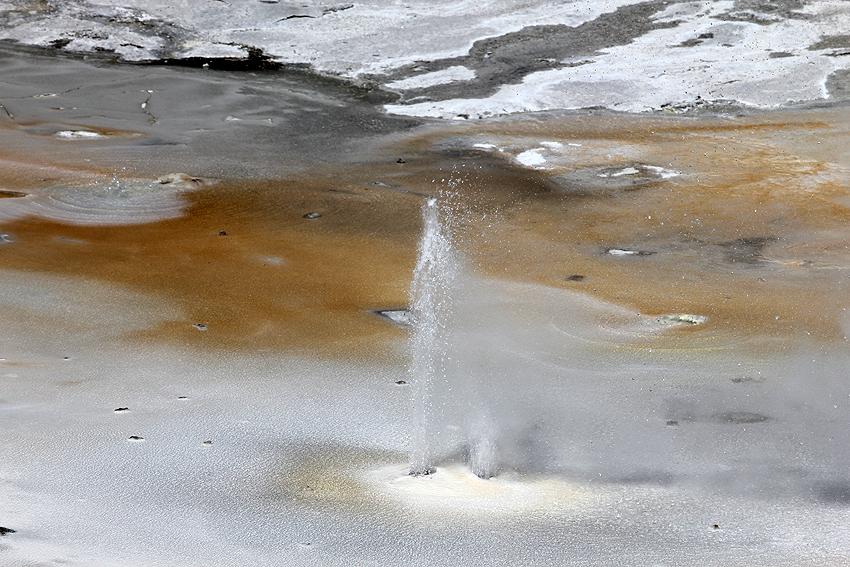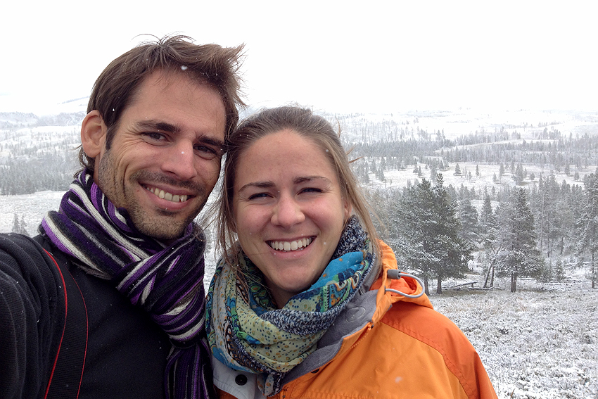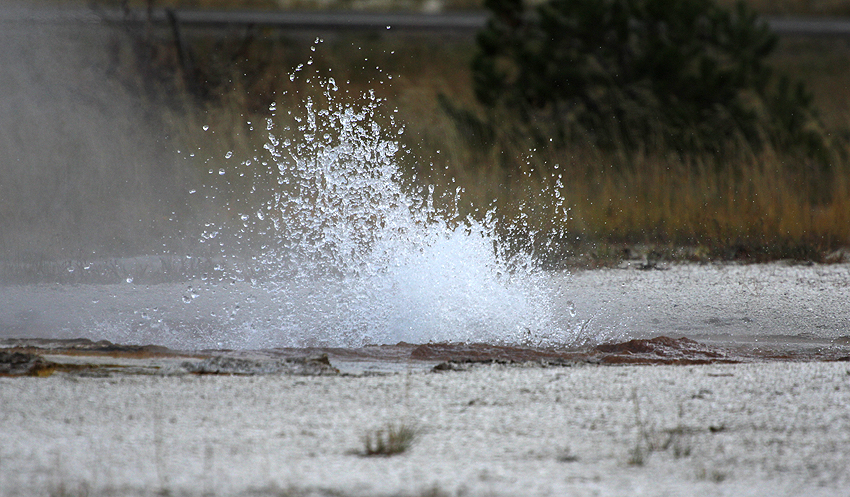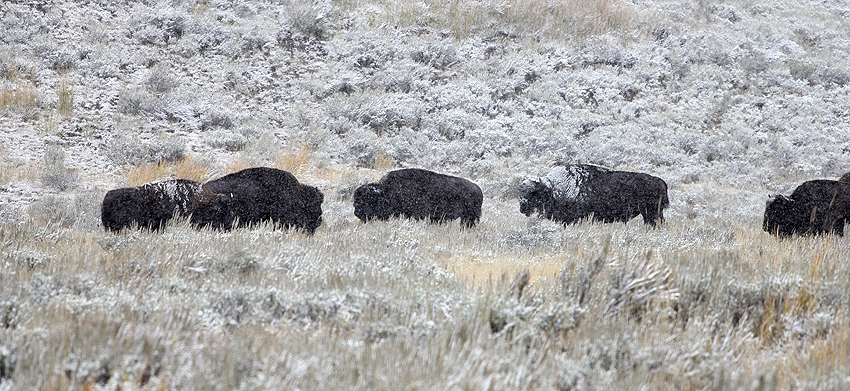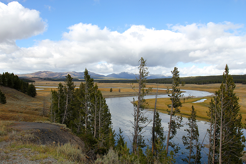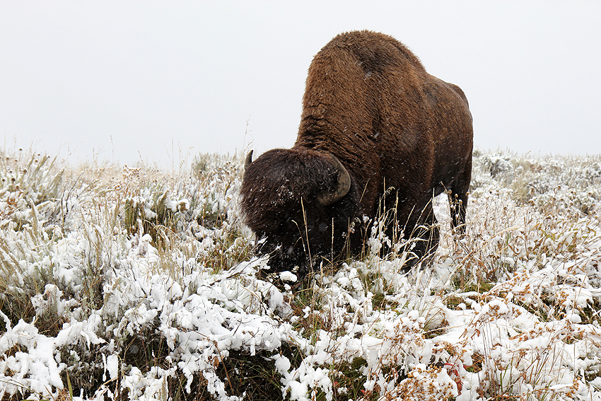 Schnee! What the F... Der Yellowstone Park hat mit etwas Schnee aber doch einen ganz besonderen Reiz und so genießen wir die Schneeflocken trotz der Kälte. Komisch nur, dass es überhaupt schneit, immerhin sind wir auf über 2000 Metern Höhe und wir haben aus geheimer Quelle erfahren, dass es doch wärmer wird, je höher man kommt. Warum? Weil man doch näher an der Sonne ist... ist doch klar! ;-) [Bozeman, MT - Yellowstone NP - Blackfoot, ID] |