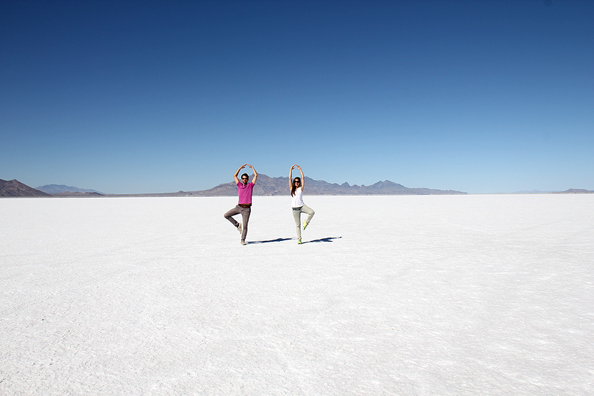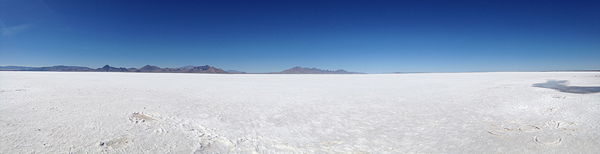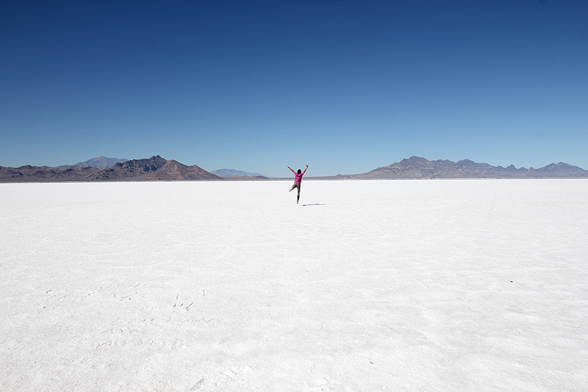 Wir entfliehen dem Schnee und landen in der Salzwüste Salt Lake City's. [Blackfoot, ID - Bonneville Salt Flats - Salt Lake City, UT] |