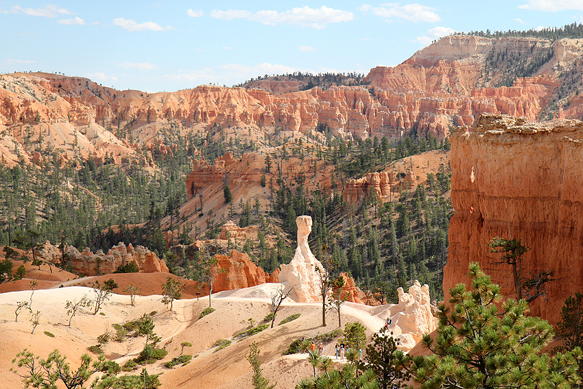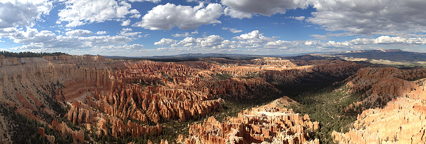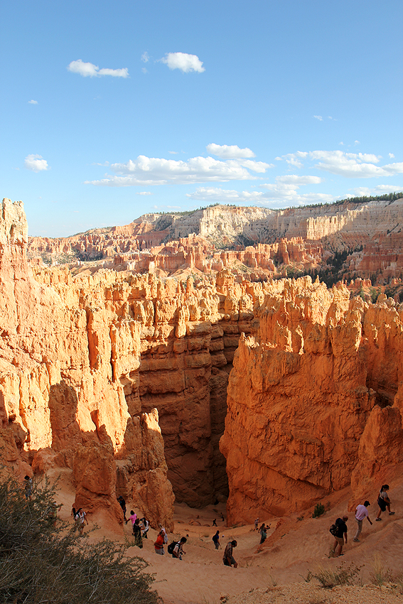 Ankunft im Bryce Canyon National Park. Auf 2400 bis 2750 Metern über NN genießen wir die aufregende Landschaft. Das Wandern in diesen Höhen (Yellowstone ist ungefähr auf gleicher Ebene) ist jedoch etwas beschwerlich, aber auch einfach wunderbar. :-) Als einer der wenigen Orte in den USA kann man hier ganz besonders gut den nächtlichen Sternenhimmel beobachten. Diverse Sternschnuppen und natürlich die Milchstraße sind Dinge, die man bei uns aufgrund der Lichtverschmutzung meistens nicht so gut bzw. überhaupt nicht erkennen kann. Die Eindrücke sind atemberaubend! [Salt Lake City, UT - Bryce Canyon NP - Cedar City, UT] |