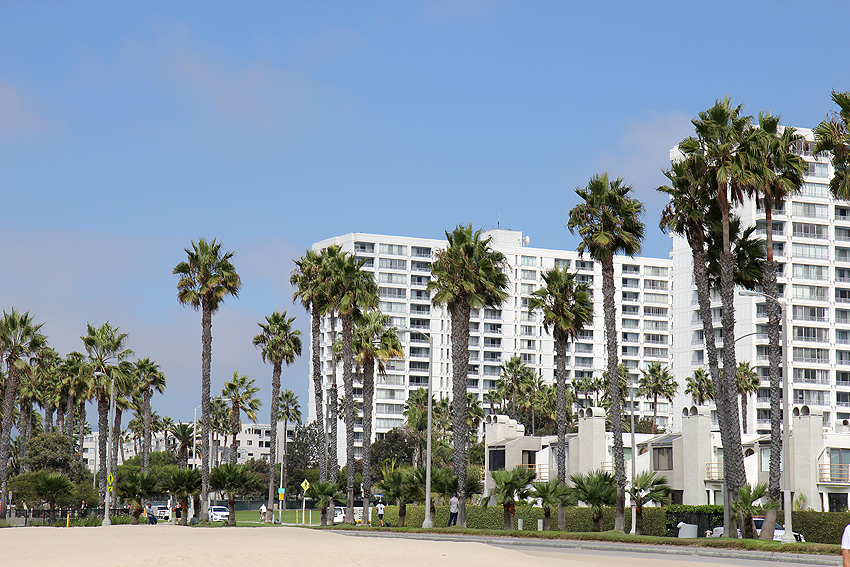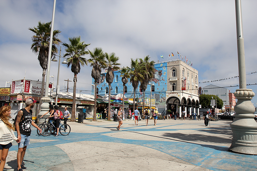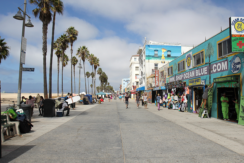 Es verschlägt uns nach Venice Beach, wo eine Menge verrückter Leute umher"irren". Von Juppies über Hippies, Musikern, die ihre CDs verkaufen möchten, und Kleinkunstwerkern bis hin zu unzähligen Obdachlosen, die in ihrem ganzen Hab und Gut in der Sonne vor sich hinschwitzen. Ein Gemisch aus Restaurants, Kannabis und Schweiß liegt in der Luft. Verrücke Welt. Im Anschluss gehen wir wieder an den Strand und genießen - leider das erste und letzte Mal - die Wellen des Pazifiks. Und ja, wir haben die Hinweisschilder mit den Warnhinweisen, dass sich in Gebäuden und Produkten schädliche Stoffe befinden, nun mit eigenen Augen gesehen. Noch verrücktere Welt. ;-) Am Abend packen und wiegen wir bereits unsere Sachen für den bevorstehenden Abflug nach New York City. [Los Angeles, CA] |