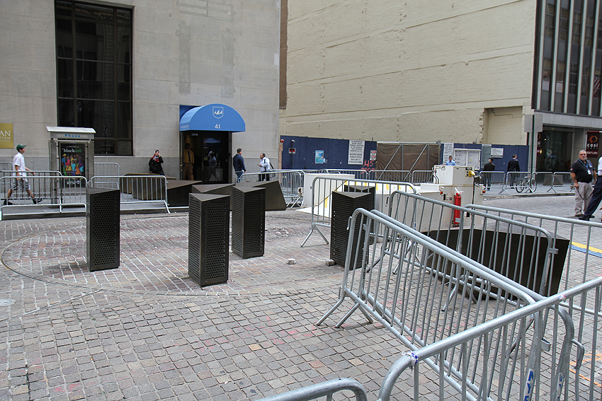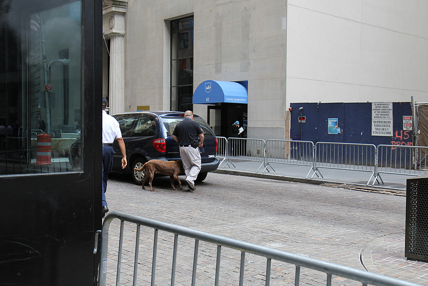 Wall Street, Ground Zero, Brooklyn Bridge, ein (ungewollter) Abstecher nach Chinatown, Grand Central Station und Times Square stehen heute auf dem Programm. New York City ist schon eine krasse und beeindruckende Stadt. Groß, schön, laut, spektakulär. Allerdings auch erschreckend und krank. Der Bulle vor der Wall Street ist mit Zäunen und Polizisten doppelt, die Börse selbst mit hochgefahrenen Panzersperren in gleich drei(!)facher Ausführung gesichert. Jeweils dahinter noch drehbare Panzersperren. Fahrzeuge werden mit Sprengstoffspürhunden untersucht. Polizei, private Sicherheitsdienste und Überwachungskamereas an allen Ecken und Enden der Stadt. Selbst der Zuccotti-Park - in dem 2011 die Occupybewegung startete - ist umzäunt und Polizeibeamte entscheiden, ob du in den Park darfst, um dort dein Mittagessen zu verdrücken oder nicht. Keine 50 Meter vergehen, ohne mindestens zwei, meist mehr Polizeibeamte zu sehen. Ständig fahren Autokonvois mit Sirenen vorbei, in denen die "wichtigen" Menschen aus den UN-Sitzungen kommen oder dort hingefahren werden und in der Grand Central Station sind neben Polizeibeamten auch gleich mal Soldaten der Nationalgarde in Tarnanzügen an allen Ecken positioniert, sodass die Freiheitsstatue vor den Toren der Stadt zu einer Farce verkommt. Man bekommt ein gutes Gefühl dafür, wohin sich diese Welt gerade entwickelt und wie ein Polizeistaat aussehen könnte... "Jaja, das ist doch alles bloß zu unserem Schutz, wir sind doch ständig in Gefahr und ALLE wollen uns nur etwas Böses, wir sind doch die Guten und hier würde das doch nie missbraucht werden... blabla". Ja ne is klar! Wir - die GUTEN - setzen uns natürlich seit Jahrzehnten immmer nur für Demokratie, arme vergewaltigte Frauen, Brunnen für verdurstende Menschen und Schulen für die armen Wüstenkinder ein! Und bei dem ganzen Gott- und Soldatengeblubber an jeder Ecke "Gott schütze unsere Truppen", "Gestorben für Gott und Vaterland" kann man sich hier schon fragen, WER hier eigentlich die Gotteskrieger in alle Welt schickt... [New York City, NY] |