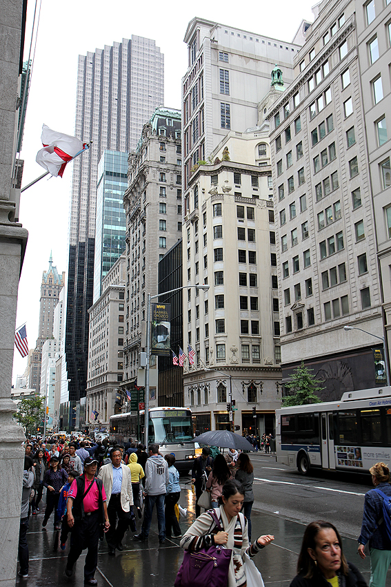 Bei Regen verschlägt es uns auf die 5th Avenue zum Windowshopping. Marcel kann sich leider nicht dazu durchringen, Anna ein schönes Schmuckstück bei Tiffany zu kaufen. Stattdessen stauben sie zwei Lindt-Schokokugeln in den Lindt-Stores ab. Ist ja auch was Feines. [New York City, NY] |